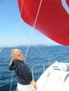 Première sortie de spi. Il va falloir investir, on constate qu'il nous faut des bloqueurs supplémentaires pour s'en servir facilement. | Le gros ballon rouge a une allure d'enfer. C'est pas Malou qui dira le contraire. | Alors prêt pour une leçon de pêche au maquereau espagnol ? | La ligne de traine est la plus performante à ce jeu là. Commencez par remonter prudemment la bête. |
