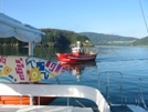 Haut les mains! Oulalala interdit de faire une photo de canon ici chicca, c'est un bâtiment militaire. Bon on dit rien pour cette photo là mais n'en faites pas d'autre, merci. "L'officière" militaire me laisse partir avec un beau sourire. Sympa! | Domi au réveil, dans le pyjama que les grands couturiers lui envient. | Allez, on quitte déjà El Ferrol, en laissant dans notre sillage... | ...Un joli petit bateau de pêche, comme dans le livre d'Enzo : le bateau de Léo. |