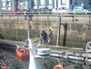 Arrivés à terre, en annexe. Nous avons soigneusement choisi notre emplacement pour accoster... | ...Et fait le bon choix, car le ponton que nous briguions en premier a été démonté quelques heures après notre arrivée. C'est toujours louche un ponton vide. | El Ferrol est une ville militaire. C'est la ville natale du tristement célèbre dictateur : Franco. | Le port est surtout occupé par de petites embarcations de pêche. |