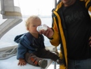 Les babordais profitent de la mer bleue, bleue, bleue. | Vous voyez que Domi n'est pas un gros d...., la preuve regardez comme il prend soin de son corps. | Allez Enzo bois ton biberon, décidément pas facile le sevrage, il faut rester zen et patient. | Impressionnants ces rochers. |
