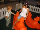 ..si bien qu'il est vite l'heure de trouver un lieu pour se restaurer. | Vous avez vu comme on est bronzés !!! | Enzo s'est fait offrir un ballon par un monsieur et son petit garçon qui se promenaient. Il marche avec, tout fier de lui. Depuis 3 jours, il a eu le déclic et il marche sans arrêt. | Aveiro by night. |
