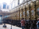 De très riches familles portugaises envoyaient leur fille ici qui apportaient au couvent des cadeaux, des serviteurs et des terres. L'église est donc très richement ornée. | Les cadeaux apportés au couvent sont exposés dans le musée des Arts Sacrés qu'habrite aujoud'hui le monastère. | Sainte Mafalda qui repose ici était une reine. | Enzo est ravi, il a fait une partie de la visite dans les bras d'Adriano ! | Autre curiosité locale, ici aussi il y a un crédit agricole. Mais qui n'a rien avoir avec le crédit agricole français. |
