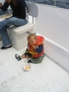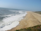 Enzo apprend à manger comme un grand. On voit au contenu du bol de pâtes que ça marche plutôt bien, même si la cuillère ne lui sert pas beaucoup. | Nazaré est bordée par une grande plage très ventée, sur laquelle viennent s'abattre de grandes vagues. Du poisson sèche sur de grandes claies. | La ville est un repère pour touristes, en particuliers les touristes français. Du coup un cirque a déplié sa tente en bord de mer. L'occasion pour nous de faire découvrir à Enzo des animaux exotiques. | Au crépuscule, quelques vieilles demeures toisent la mer. |