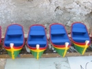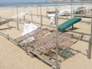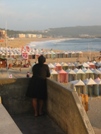 Les petites dames du coin arborent une tenue plutôt typique pour vendre leurs chambres d'hôtes aux touristes. Celle ci paraît songeuse devant la forêt de tentes plantées sur le coin abritée de la plage. |