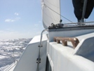 Levé du soleil poétique, ça vaut le coup de faire des quarts des fois. | Allez courage mon Tintin c'est l'heure de ton quart. | On arrive dans quelques heures, on sent un certain laissez aller chez notre capitaine. On vous rassure, il s'est rapidement ressaisi ensuite !!! |