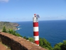 Après la traversée, nous accostons les Açores et commençont par la visite d'une petite île sauvage, c'est Santa Maria. Nous louons un taxi pour visiter les lieux. | Les églises sont les principaux monuments historiques de l'île. Les habitants ont l'air très pratiquants. | Depuis l'un des nombreux "Miradouro" on observe la baie de Sao Lorenzo. | Le taxi nous conduit dans chaque lieu digne d'intérêt et le chauffeur nous attends patiemment à chaque halte. |