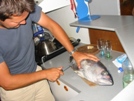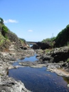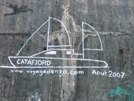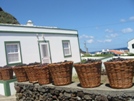 Mère et fille sur le chemin de la vigie des baleines. Dans ce petit bâtiment avec vue sur mer, des hommes ont inlassablement scruté l'océan dans l'attente du passage du précieux cétacé. L'abandon de la pêche date du début des années 80. | Les oies et les canards habitent dans le lit d'une petite rivière qui va se jeter sur une plage toute proche. | C'est déjà l'heure de la vendange. Les vignes sont plantées sur de petites terrasses juchées sur les flancs escarpés de la montagne. | Tintin et Domi sont invités à visiter l'usine de congélation du thon. Ils reçoivent en plus en cadeau cette belle bonite de 5 kg. | Avant de partir, Domi et Malou exercent leur tament artistique pour laisser une trace du passage du Cata Fjord et de son équipage en ces lieux. |