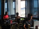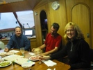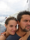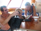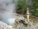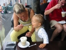 Domi coiffeur officiel du Cata Fjord, exerçant ses talents sur Enzo. | Nous louons une voiture deux jours pour visiter l'île. On tombe sur un car de touristes très enjoués qui chantent et dansent à la sortie du bus. | Miam la chantilly du Capucino de Mamilou. | Ouahouh ça bouillonne là dessous. C'est incroyable ces phénomènes volcaniques. Nous sommes à Furnas. |