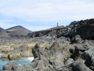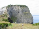 On a loué une voiture pour faire le tour de l'île. | La seule falaise de calcaire de Faial. | Au bout de l'île nous découvrons les paysages qui ont été le théatre de la dernière éruption en 1957. Malgré les nombreux dégâts, le phare, lui, a miraculeusement été épargné. | Aucune végétation n'a encore recouvert ces montagnes brûlées surgit des profondeurs de l'océan il y a seulement 50 ans. |