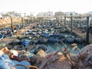 Lever de soleil sur la côte marocaine, encore quelques milles à parcourir et nous aborderons un nouveau continent : l'Afrique. | Le port de pêche est impressionnant. Il y a là plusieurs centaines de bateaux de toutes tailles. Les chalutiers sont armés pour la pêche à la sardine qui n'est plus très florissante. | Aussitôt installés et après avoir effectué quelques réparations sur le bateau, nous voici au souk. Tintin a été adopté par un berbere qui lui a prêté son couvre chef le temps de prendre le thé. | Domi et Malou ont été invités au thé...en fait les touristes que nous sommes sont un peu des proies faciles pour vendre des épices à des tarifs exhorbitants...c'est le jeu. |