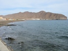 Malou tente de faire ami ami avec ce garçon mais il reste de marbre. | Et hop, coucou je te vois ! | Bonne nuit ma biquette. | Une vingtaine de milles plus loin, nous sommes à Gran Tarajal. Cette éolienne d'époque servait à pomper l'eau de mer pour les salines. | Panorama sur la plage de Gran Tarajal. |