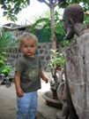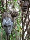 ...et masques ... | ...et aussi ce drôle de petit homme qui plait beaucoup à Enzo. | La chaloupe prend un peu l'eau, mais c'est suffisant pour franchir les quelques centaines de mètres qui séparent NGor du continent. | Un couple de pélicans apprivoisés profitent des charmes de la plage. | On ne peut pas quitter Dakar sans vous signaler la Rue Peytavin, en plein centre ville !!! Sans doute un illustre ancêtre de mon Tintin. Il va falloir que Jean Paul fasse des recherches généalogiques ?! |