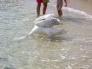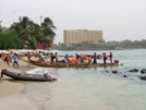 Malou à Gorée. | Le lendemain pendant que nous allons à NGor, Domi et Malou prêtent main forte au passeur du CVD pour réparer sa chaloupe. | Le côté sauvage de NGor. Cette petite île est le paradis des surfeurs. | Nous avons débusqué un petit restau sympa avec vue sur la plage et le lagon. |