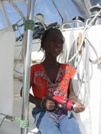 Nous nous rendons à Saly pour rencontrer Danièle la maman de notre ami Max (pour ceux qui sont venus à la fête de Départ c'est le propriétaire du Spirit of Victoria qui était à couple du Cata Fjord ce week end là !!!!) | Elle nous présente Mama, la fille de la dame qui travaille chez elle. Enzo est ravi de cette charmante rencontre. | Saly est une station balnéaire très prisée des touristes français, tous les soirs on peut entendre la Compagnie créole tourner à fond sur les platines des bars d'hôtels alentours. | Allez on se motive (merci Danièle) et on va se baigner (première baignade depuis notre départ pour Malou). Enfin elle est un peu frisquette, à peine 21°C. |