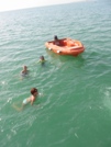Photos de groupe... | ... pour les souvenirs et pour envoyer à notre Maxou. | Encore un pélican, décidément il semblerait que ces animaux travaillent beaucoup pour l'industrie touristique. | Une dernire soirée à Saly avant de faire cap sur M'Bodiene où vit Danièle. Notre objectif : mouiller en face de sa maison. |