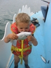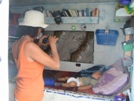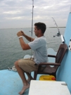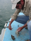 Ne vous méprenez pas en regardant cette photo. J'entends d'ici les commentaires vaseux de mes anciens voisins de la rue Nungesser. Sachez que nous sommes à la pêche aux coques. | et Domi à la pêche à la ligne pendant ce temps là. | Un petit DVD et pouf voilà notre papoute assoupi dans la couchette du capitaine. | On pêche de drôle de chose dans le Saloum, dont plusieurs poissons crapauds qu'on est obligé de remettre à l'eau. |