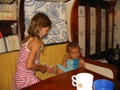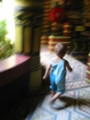 Les décors intérieurs sont peints en s'inspirant de motifs de tissus diolas (ethnie de Casamance). | Actif le bébé ! | Séance musicale avec la jolie Coralie, sur le bateau de qui nous sommes invités à déguster de succulentes crêpes...Merci à Isabelle, sa maman ! | Visite de la ferme de Djibelor, qui élève des crocodiles du Nil et cultive des fruits, légumes et fleurs tropciales. On a pu, pour la première fois de notre vie, déguster des brochettes de crocodile. C'est pas mal. | Les bébés croco (7 mois) plutôt craintifs ont tendance à s'enfoncer sous l'eau à notre approche. |