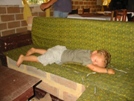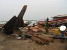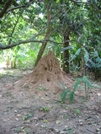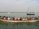 Une termitière, celle ci est petite, elles peuvent atteindre des hauteurs bien plus significatives. | Pfff creuvant de rendre visite à des crocodiles, Enzo fait un somme dans le salon du restaurant en attendant le retour du taximan. Très sympa d'ailleurs le taximan, il nous a même invité à boire un fanta chez lui et nous a présenté toute sa famille. La qualité de l'accueil casamançais n'est pas un mythe. | Les pirogues qui assurent les liaisons maritimes sont surchargées. | En face du bateau, les pécheurs fabriquent leurs pirogues. | Les ados sont heureux d'être pris en photo et demande à Malou de leur en apporter une. |
