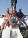 ..et les crocos de Léon. Ils vivent à l'état sauvage dans les bolons, mais on en trouve plus beaucoup. Ils sont de l'espèce "crocodiles du Nil". | Enzo surveille l'annexe... | ...et Domi s'entraîne à faire de la pirogue au sec. | Souvenir de Léon en visite sur le Cata Fjord. |