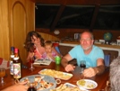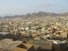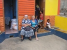 Malou avec une petite mamie cap verdienne assise devant sa maison. | Panorama sur Mindelo. | Enzo se prend souvent pour le chat, il va même dans son panier. | Le voyage est fait de rencontres inattendues, nous croisons la route d'Ivan, un pro du nautisme connu de longue date qui fait escale à Mindelo à l'occasion d'un convoyage. On fait aussi la connaissance de ses équipiers Marie et Gweltaz. Il s'avère que Marie connait très bien Claire et Philippe dont la péniche était amarrée juste à côté du Beau Fixe de Domi et Malou. |