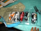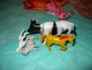 Nous, on a opté pour les traditionnelles petites voitures... | ...des beaux slips puisque depuis un mois Enzo ne porte plus de couche... | ...et une petite fourchette, pour manger comme un grand. | Nos amis l'ont bien gâté : des petites figurines des animaux de la ferme (pour pas être perdu quand il ira voir ses grands parents en Savoie et ses grands tontons bretons). | Une voiture qui avance toute seule en faisant un bruit d'enfer... |