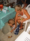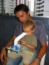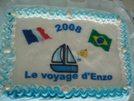 25 mai 2008, aujourd'hui Enzo a deux ans. Fernando et Marcia nous ont tous invités à un goûter d'anniversaire brésilien. Le gâteau donne le ton. | Nous nous retrouvons dans la salle des fêtes de l'immeuble de nos amis. Ils ont tout décorés et préparés plein de douceurs. | Enzo est paré à ouvrir ses cadeaux, et il a de quoi faire... | Mamilou et grand père ont pensé à un sac pour ranger ses jouets... |