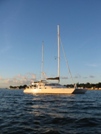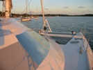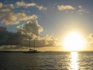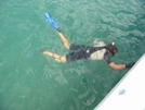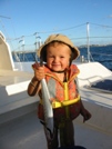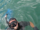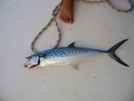 Il ne faut pas croire qu'on se tourne les pouces. Les algues ont bien poussées depuis notre arrivée à Salvador, et il faut gratter... | ...gratter, gratter pour enlever tous les coquillages et autres indésirables qui se sont scotchés à nos basques. | Sur le chemin du retour, je pêche un petit thazard. Tout petit et surtout tout léger (moins de 300 grammes), mais il fait grand plaisir à Enzo. | Et il ne va pas tarder à finir dans nos assiettes. Tant pis pour lui si il est petit (40 cm), il paie pour tout ces congénères plus gros qui ont bouffé nos bas de ligne sans vergogne ces derniers mois. |