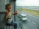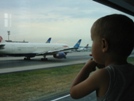 Youpi on est parti. Vous avez vu, je porte ma valise comme un grand. | Ouahou c'est gros un avion...Je trouve ça passionnant de les regarder passer. | Regarde maman...un aut'...un aut'...un aut' Et oui, nous sommes dans un aéroport, les avions ce n'est pas ce qui manque. |