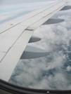 Nous avons transité par Francfort après 9h de vol au dessus de l'atlantique. Nous avons survolé à toute vitesse nos lieux d'escale de l'année passée...les îles du Cap Vert, les Canaries, Madère, le Portugal, l'Espagne | Entre les nuages, je vois passer Francfort sous l'aile de l'avion. | Nous volons au dessus des nuages, je m'endort comme un ange jusqu'à l'atterrisage à Paris. |