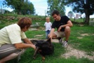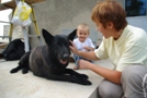 Heureusement avec Maryse c'est facile de les caresser, ils la considèrent comme leur maman. | Papa non plus, il n'a pas peur. | Maryse et Alain ont trouvé un truc d'enfer pour faire avancer les travaux, ils forment leur pensionnaires dès qu'ils sont chiots à manier la bétonnière. |