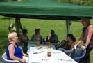 Je rencontre ma cousine, la belle Lénaïs. | Nous mangeons un méchoui...miam. | Maman arrête pas de prendre papa en photos, c'est bête les amoureux. | On a dû se mettre dedans, ,il fait aussi froid que le jour de mon baptême. Ce n'est pas un bon choix le 15 août pour faire une fête à Villette. |