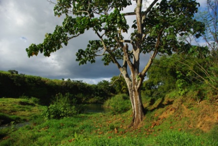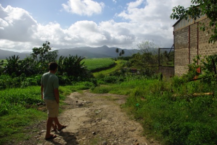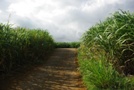 La rivière qui mène aux ravines chaudes, impossible de s'y rendre, les bains sont en "réfection", dommage. | Au milieu des plantations de cannes. |