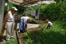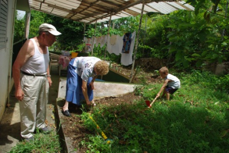 Chassez le naturel...il revient au galop, il ne leur aura fallut que 5 jours pour se remettre au jardinage. Cette photo est un peu trompeuse on dirait qu'Enzo et Odette bossent et que Jean Paul donne les ordres...mais en fait il a bien déblayer son carré de mauvaises herbes quelques minutes avant !