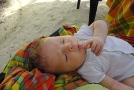 Et Kilian qui profite de l'après tétée pour se reposer (pour être en forme la nuit prochaine ???).