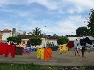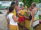 Comment résister à cette charmante brésilienne qui sollicite un coup de main pour mettre sa pirogue à l'eau | Les enfants sont très curieux de pouvoir apprendre des mots de français | La lessive sèche sur la place du village | Il va faire nuit, il faudrait nous rendre nos maris maintenant! |