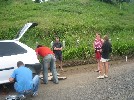 Le taxi nous paraissait plus sûr, mais nous voilà déjà au bord de la route à cause d'une crevaison | Nous y voilà quand même. Sao Félix forme avec Cachoeira un seul centre urbain; situées de chaque côté du fleuve, elles sont reliées par un pont de fer construit au XIXème siècle | Fondée en 1694, les premiers colons sont portugais Cachoeira a acquis une importance économique avec le développement de la canne à sucre et du tabac. En 1822, elle prend la tête du mouvement pour l'indépendance de l'état |