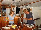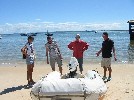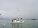 . Sous un ciel un peu gris, le cata Pénélope arrive à notre rendez-vous à Itaparica. A son bord Françoise et Daniel, et leurs invités pour 3 semaines : Nathalie et Jean-Claude |