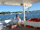 Une dernière soirée à Itaparica avec Héléna et Romano. Après une année passée à Itaparica, où ils ont créé un cinéma, ils ont été dépouiillés dans leur maison; alors pour eux le voyage va aussi continuer avec "Caminito" | 6 heures de navigation sous le soleil, et nous voilà ancrés à Gamboa sur l'île de Tinharé . Située au Sud de Salvador, environ 300 kms par la route de Salvador, mais à peine 80 Kms en bateau | Un petit rafraichissement tout en admirant notre cadre de plage paradisiaque et de végétation luxuriante |