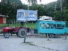 C'est auusi un haut lieu touristique aux multiples boutiques et plages auxquelles nous goûtons après un excellent repas typique | La journée s'avance! est-ce ce tracteur que nous allons emprunter pour retourner à Gamboa | En fait, c'est très long par la route; nous allons revenir avec un bateau-pays qui va partir quand il sera complet | Un dernier regard attendri pour ces pirogues |