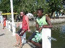 Avec vue sur le canal, rien ne vient troubler le repos des morts | Et nous voilà tous attablés sous l'arbre devant la plage pour déguster de délicieuses crevettes | préparées par un "grand cuisinier " qui remplit toute sa cuisine | et toujours du spectacle , que ce soit l'équipe de foot qui rentre triomphante en bateau avec sa coupe, |