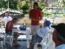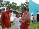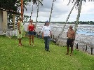 L'intérieur est très fonctionnel, mais leur bateau a été mal construit, et Domi se penche sur leurs problèmes | Fredson nous invite à sa maison où Claudia a préparé un excellent buffet de plats typiques | et nous déjeunons en compagnie des jeunes dentistes et médecins bénvoles venus de Salvador pour prodiguer des soins durant le week-end | Petite promenade digestive avec notre ami pêcheur qui nous explique l'utilisation de la forêt |