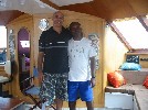 Et tous les habitants de Canaveiras bénéficient à tour de rôle des soins dont ils ont besoin | Danilo, qui nous avait guidé, vers Boipeba, vient visiter notre bateau | Mission accomplie, l'équipe vient nous rendre visite sur Le Catafjord | et Azis nous dédicae une bible en Portuguais |