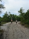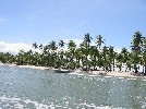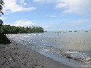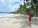 Après 30mn de zig-zag sur le canal, nous laissons l'annexe sur la plage de Porto de Boipeba sous l'ooeil vigilant de Danilo , et partons à pied vers Morere | Suivant les indications qu'on nous donne, nous voilà sur une plage, mais pour atteindre Morere par là il faudrait se mouiller jusqu'au cou | On rebrousse vaillament chemin pour trouver une route moins humide |