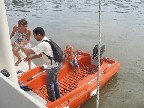 Attention à ne pas se faire mordre en décrochant l'hameçon | et 6 jours plus tard, Catafjord franchit gaillardement la bouée d'atterrissage à l'entrée du Mahury | Pour prendre un repos bien mérité au mouillage | devant la marina de Degrad des, Cannes où nous retrouvons Syvie, Richard , Eloé sur "D'un B" |
