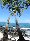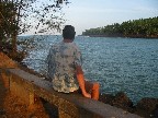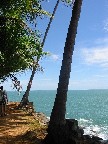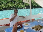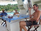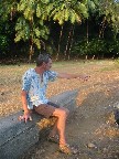 Domi me montre une des nom-breuses tortues "carette" qui viennent régulièrement respi-rer à la surface, mais pas faciles à photografier. |