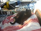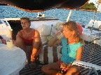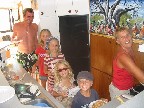 Les aménagemnts sont sommaires; mais "Bismark" est bien installé. | Nos amis de Genesys, après avoir passé la semaine à Kourou, reviennent jeter l'ancre dans l'anse des cocottiers | Et c'est l'occasion d'un goûter-crêpes sur le Catafjord ; il manque le cidre de Hubert! |