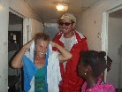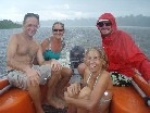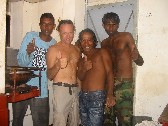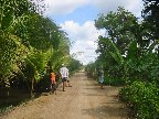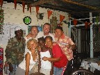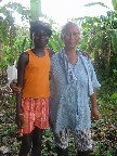 On retrouve à l'aube, la chauve-souris qui venait, depuis plusieurs jours, nous rendre visite dans la cabine, quand nous étions couchés | Ballade dominicale en annexe avec nos amis RIVIERE; La premiere escale à la plantation laisse présumer une ballade peinard | D'ailleurs Eloe est fort détendue; et nous devisons avec une habitante de la plantation |