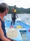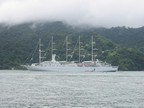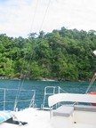 Une eau claire qui invite à la baignade, le petit village de Charlotteville, quelques bateaux retrouvés... | et dans la brume du petit matin, un majestueux voilier | Dave nous propose de partir en pêche sur sa pirogue; et c'est bredouilles, et sous une pluie battante que nous reviendrons au mouillage |