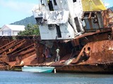 Avec un vent un peu musclé nous rejoignons La Dominique. Rien, comparé au cyclone qui a poussé les bateaux sur la côte de Porsmouth |