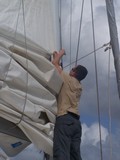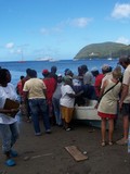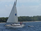 Et voilà notre ami Momo qui arrive dans le mouillage de St Louis | La plage devant le bateau | Tournée des distilleries |